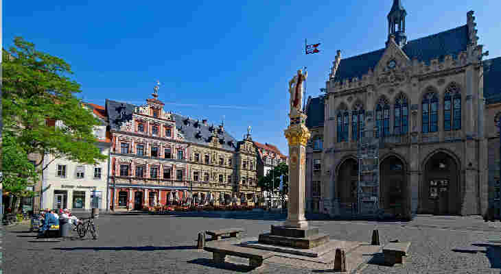 Obelisk, Waidspeicher, Hochzeitshaus, Allerheiligenkirche, Fischmarkt, Krämerbrücke),